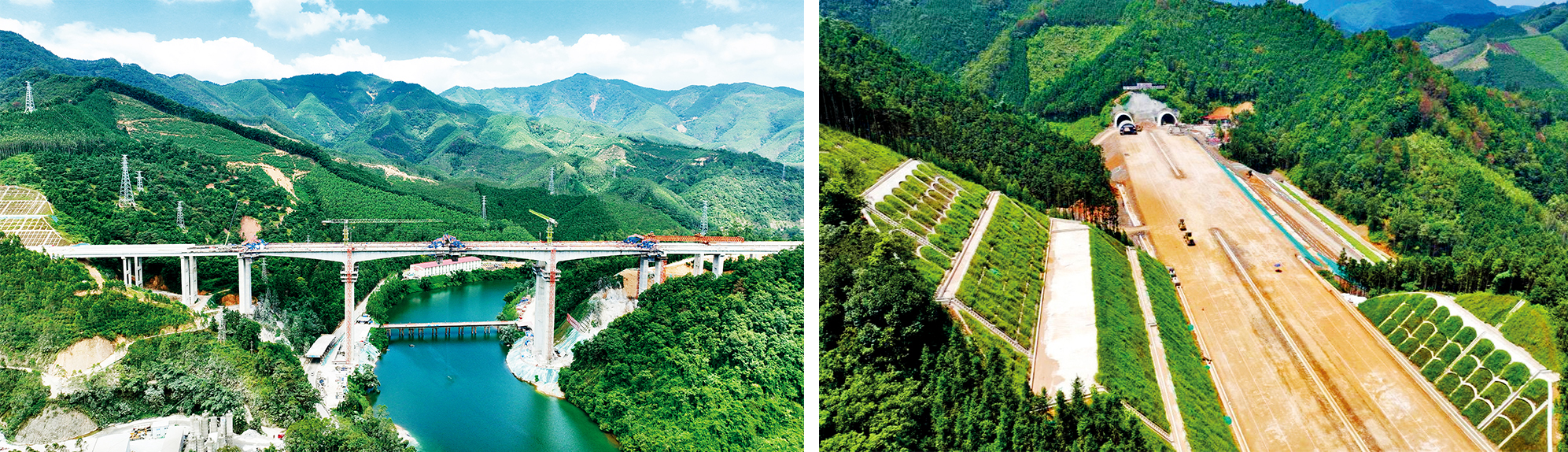 连贺高速位于南岭山区,沿线地形地质条件复杂,沟壑深切,山体陡峭,地层岩性多变,穿越保护区段落较长,桥隧比例较大,控制性工程多,工程规模大。全线设置互通式立交 4 处、服务区 2 处、养护工区 1 处、管理分中心 1 处,另设连接线 6公里。设计人员秉持“安全、环保、舒适、和谐”和“以人为本,安全至上”的理念,充分开展现场调查和地质勘察,落实地质选线,防范地质风险,优化桥隧布置、互通及沿线设施方案,开展桥隧精细化设计,贯彻生态保护理念,设计成果质量优良。