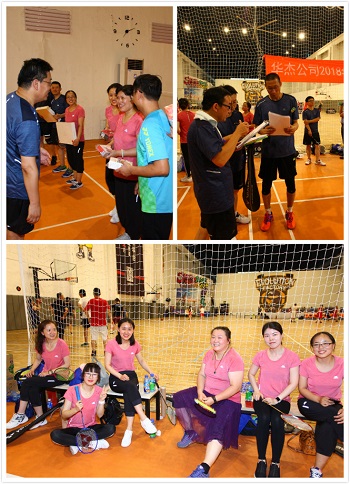 华杰公司2018年羽毛球友谊赛于6月29日举行,比赛设男单、女单、男双、女双、混双、48岁以上单打和48岁以上双打共计7项赛事,参赛人员超过60人。经过4个多小时的角逐,各项赛事决出冠、亚、季军共计30人次。