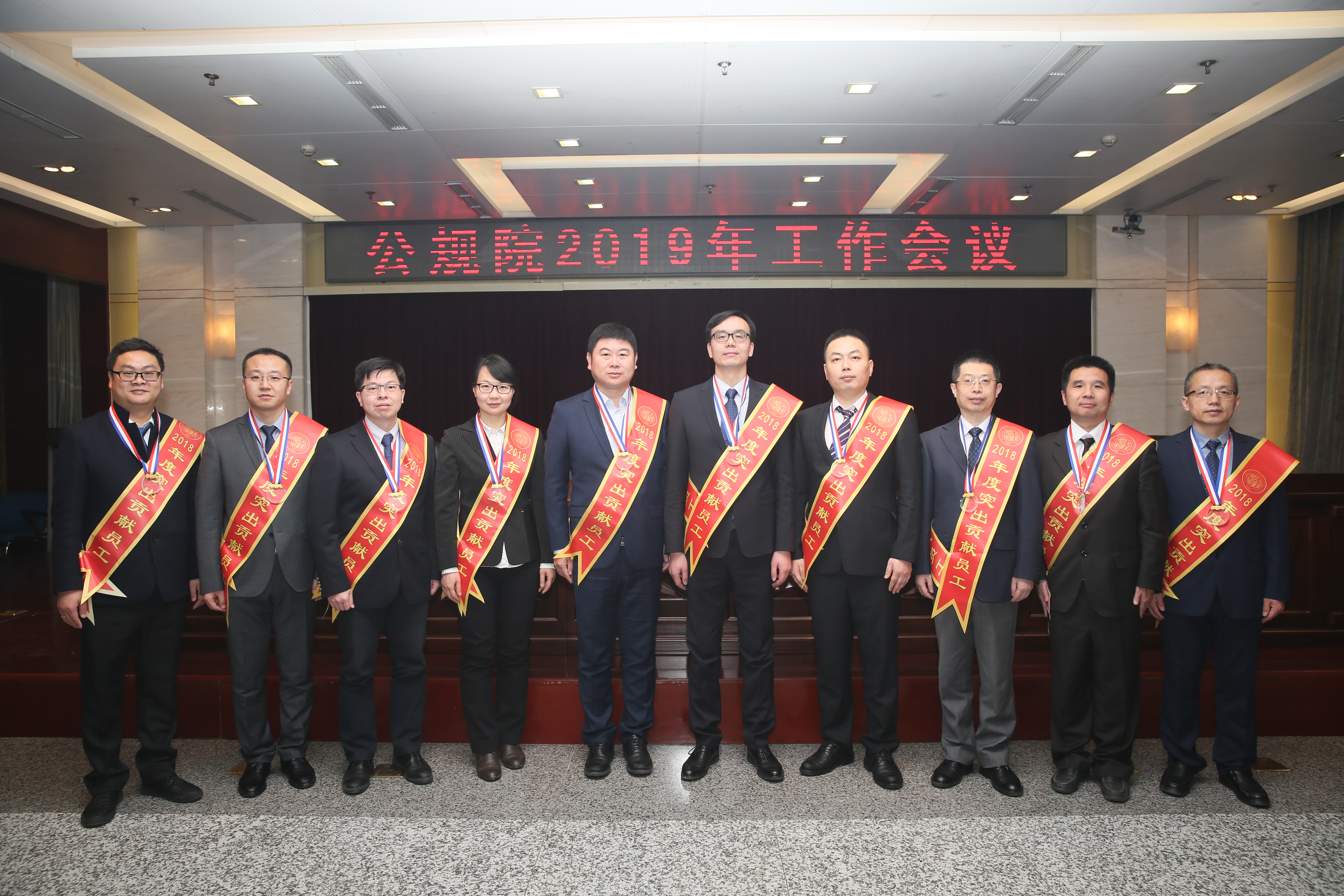 勘察设计一部经理王辉(右二)接受2018年十大突出贡献员工表彰