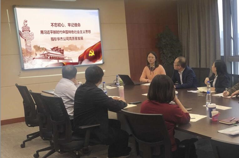 研讨过后田丰书记讲专题党课。全体参会人员庄严肃立、齐唱国歌后,认真聆听了田丰书记讲授的题为“不忘初心、牢记使命,用习近平新时代中国特色社会主义思想指引华杰公司高质量发展”的主题教育党课。田丰书记向大家讲述了开展“不忘初心、牢记使命”主题教育的目的,以及习近平新时代中国特色社会主义思想的丰富内涵;从“两个基础”等七个方面,强调了习近平总书记关于国资国企工作的重要指示要求;结合国家“交通强国”战略与公司业务的发展的特点,阐述了践行初心使命的实现路径;最后,田丰书记针对公司发展中存在的问题以及公司发展规划,提出了“运用习近平新时代中国特色社会主义思想指导实践、推动发展”的工作要求。