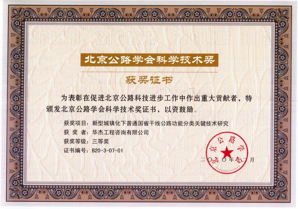 4月20日,2020年度北京公路学会科学技术奖颁奖会在京召开。华杰公司申报的《港珠澳大桥跨界通行政策专题研究》《新型城镇化下普通国省干线公路功能分类关键技术研究》两个项目,分别荣获2020年度北京公路学会科学技术奖二、三等奖。