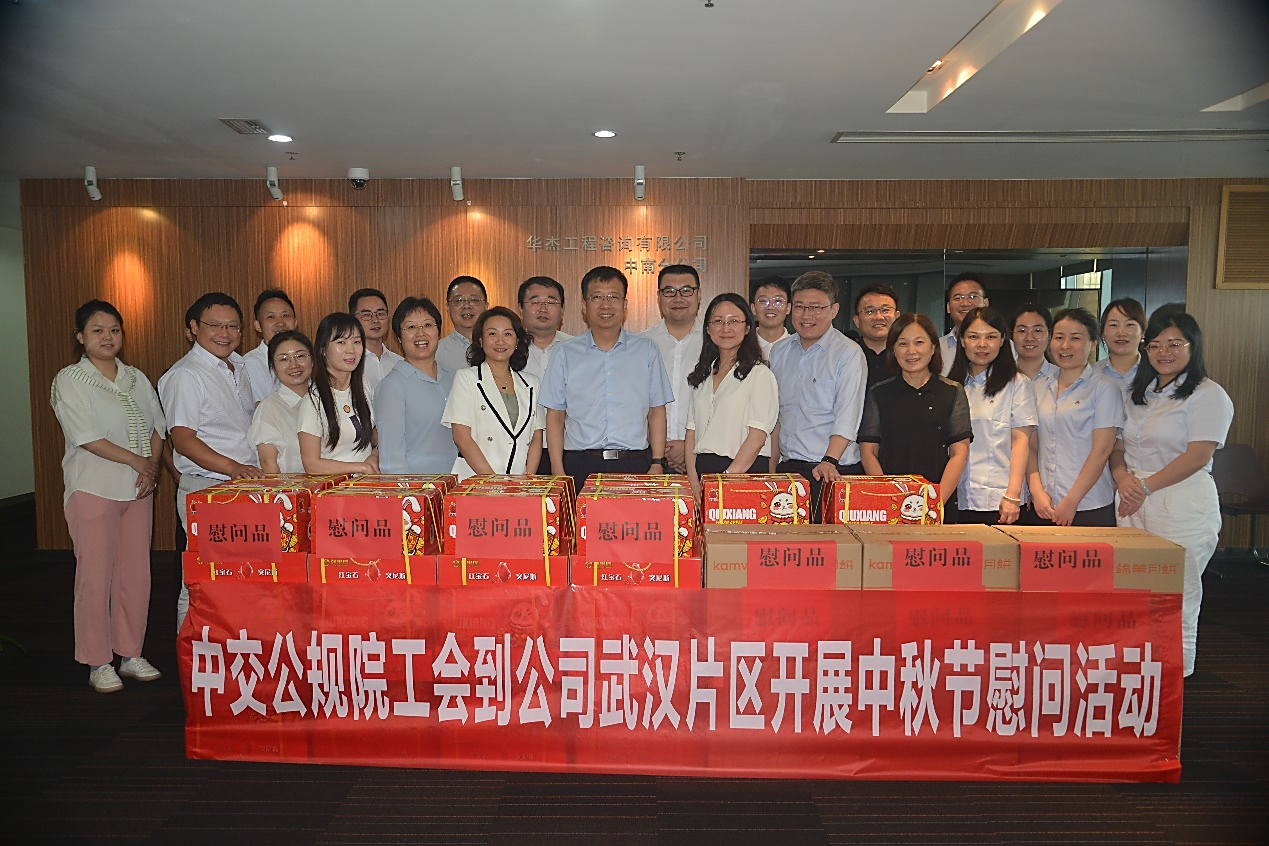 9月19日下午,公规院工会组织开展武汉片区中秋慰问活动,院党委副书记、纪委书记、工会主席孙勇一行莅临华杰中南分公司慰问调研,为一线职工送来温暖关怀和节日祝福。华杰公司党委书记、总经理田丰,工会主席陈克丽参加活动。